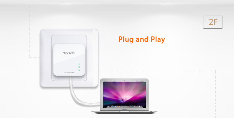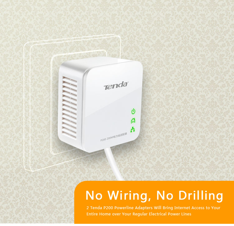 To build a network at home or office with minimum effort and cost, the Tenda 200Mbps Powerline Adapter is your choice. In many cases, Ethernet is just not available in places where network connectivity is needed. However, almost every room at home or office has power circuitry, which can be used to extend network connections from your broadband router. Simply plug one adapter that links to a broadband modem/router into the power outlet in one room, and plug another adapter linking to a PC or any Ethernet device in the other, you can then easily and instantly create a powerline network of up to 200Mbps, 2X of a traditional switch or router, with the driving capability of up to 300 meters, 3X of Ethernet cable.